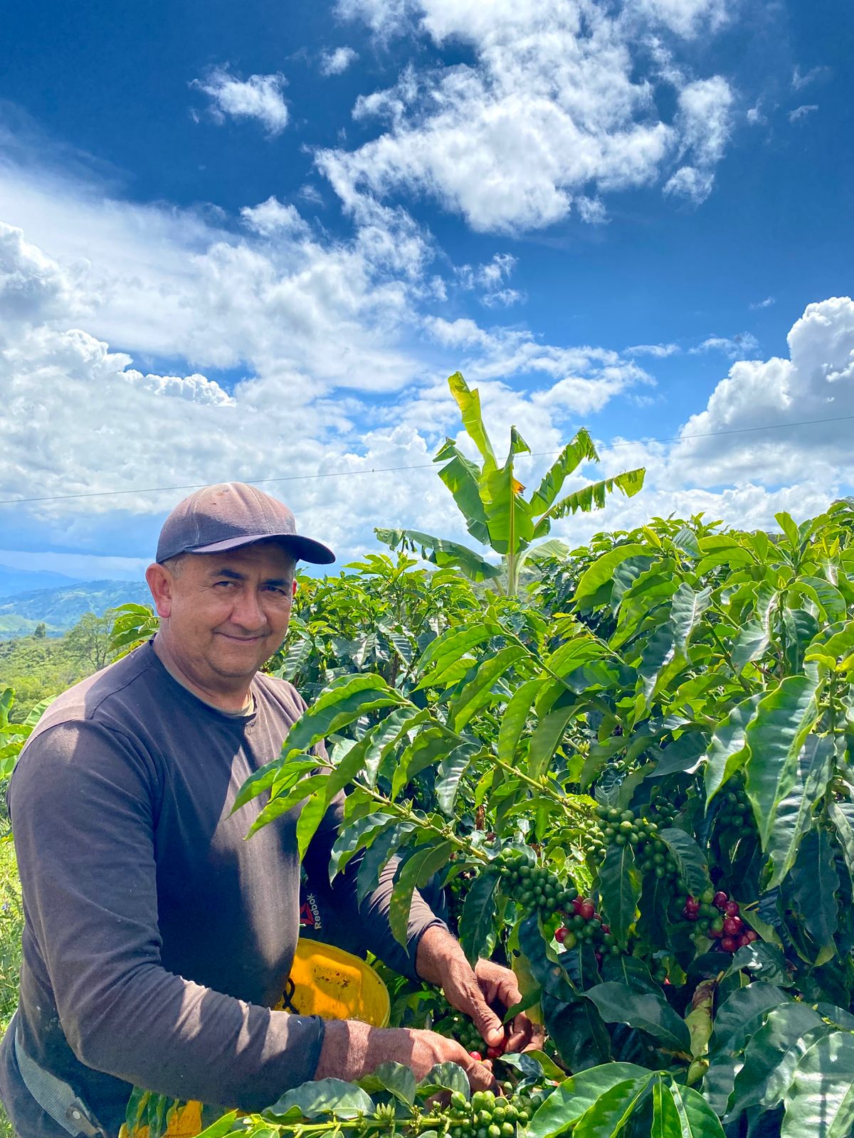 我出生于1974年的卡克塔省弗洛伦西亚市,那里围环绕着牛群、马匹和阳光。有一段时间,我离家生活。在朋友中,我认识了现在的妻子。我爱上了她,我们很早就结婚了。我把她带到弗洛伦西亚和我一起生活。后来,我们生了三个孩子:两个女儿和一个儿子。过了一段时间,游击队(武装团体)来到那片土地并把我们带走了,我们在我妻子的父母家避难了几年,她家里有很多咖啡种植户,她的一个兄弟住在那里,已经在蕙兰从事咖啡工作,她给了我们一块地(露台)做房子,我们在露台上种咖啡,因为那是我妻子想要的,我对咖啡一无所知,但随着时间的推移我学会了,直到我最小的女儿也开始学习咖啡,从那时起我就和她一起学习,我们一起成长,现在我可以区分咖啡的品种,知道我在农场种植和收获了什么,因为咖啡,我已经愉快地生活了 20 年。